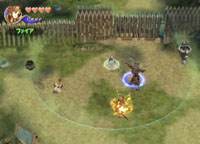 Next we went into the first dungeon. The thing that annoyed me most was the limit of movement. To be protected from the poisonous miasma that covers the world, you have to be within the crystal’s area. One person has to carry it at all times so if you’re the one carrying it, you have to drop it to attack or use magic on the enemy.