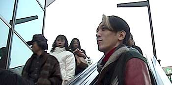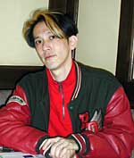 For someone who adorns pictures in poses that even a super model wouldn't strike - someone with yellow streaks in his hair, and who dresses in audaciously bright clothing - Ikuhara comes across as a very down-to-earth person. He's a creative person, but also a businessperson, a duality responsible for his being able to both direct and produce "Utena" - a skill that allowed him to leave a highly successful anime company and turn "Utena" into an independent hit. Overall, though, he is extremely laid back - except, of course, about coming to the US, which frightens him. He's not going to back out of the trip because he's already made the decision, but he worries nonetheless.
