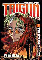 Trigun, the popular anime series distributed in the US by Pioneer, is now available in manga format by Dark Horse Publishing and translated by Digital Manga Publishing. This first volume covers the introduction of Vash and his inevitable meet up with Meryl Strife and Millie, the members of the Bernadelli Insurance Society that make sure this walking disaster area doesn't do any more harm.